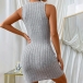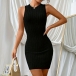 Elegant Solid Color Crew Neck Sleeveless Ribbed Bodycon Dress