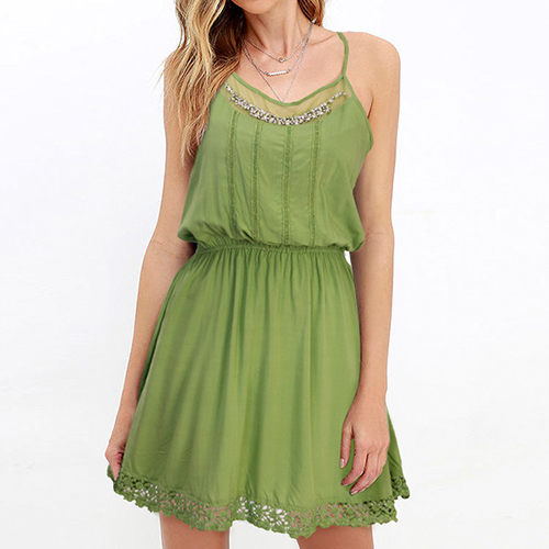 you a comfortable day,whilst its rhinestone details and lace spliced hem make this dress look more charming and distinctive.