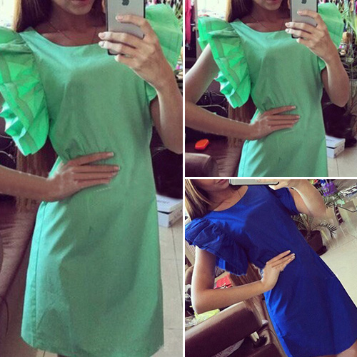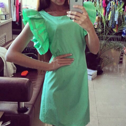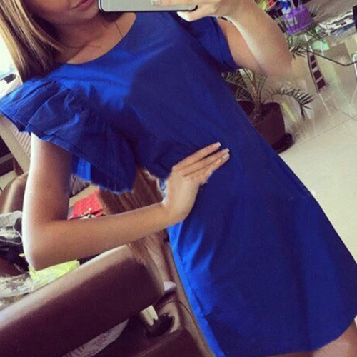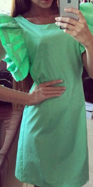 Solid color style,with round neck and flouncing design,sweet and stylish. If adding a sparkle necklace