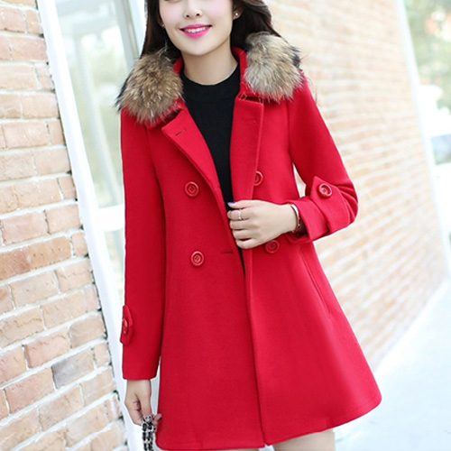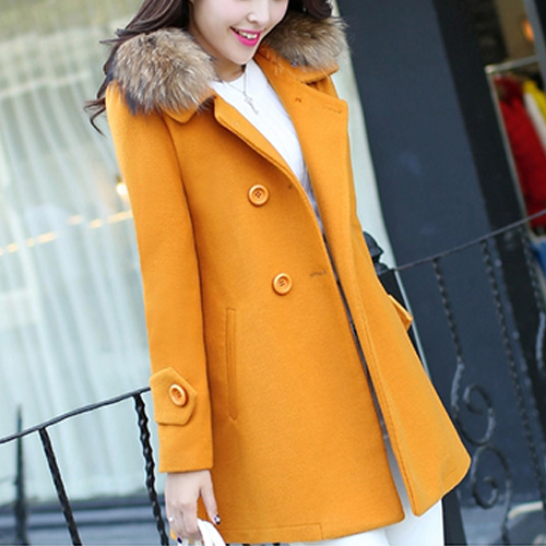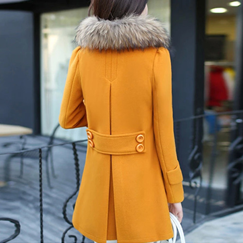with faux fur collar,soft and warm. Long sleeve,double-breasted and slim fit design. Keep you warm and show your