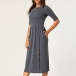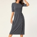 Elegant Solid Color Half Sleeve Round Neck High Waist Dress