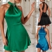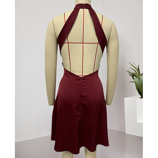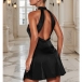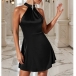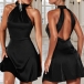 Elegant Solid Color Halterneck Backless Mini Dress