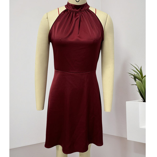This Mini Dress is a sophisticated and chic dress that exudes elegance and style. The halterneck design adds a touch of glamour, making it perfect for special occasions or nights out. The backless detail adds a hint of allure and sophistication, creating a statement look. Perfect for summer party wear.