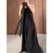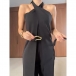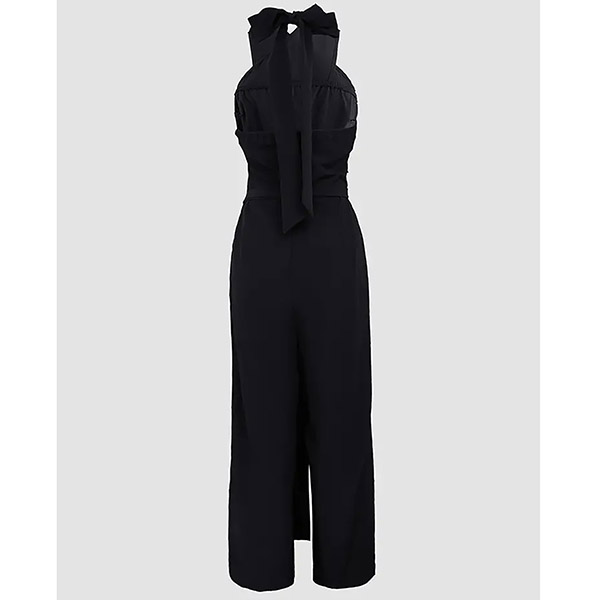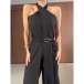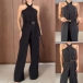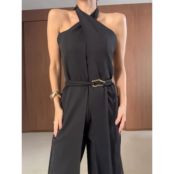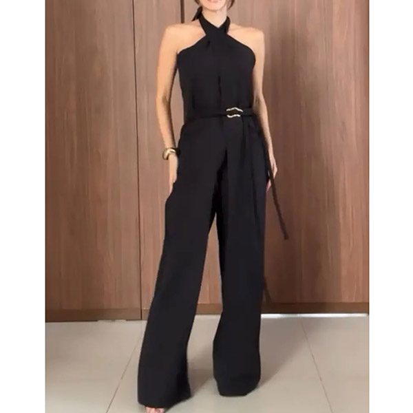 Elegant Solid Color Halterneck Self-tie Wide-leg Jumpsuit