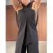 Make a statement in this elegant black jumpsuit. It designed with a self-tie feature for a customizable fit. The wide-leg silhouette flows beautifully, offering a flattering and sophisticated look for any occasion. Made from high-quality fabric, this jumpsuit combines comfort with style, perfect for evening events or daytime brunches. Hope you like it.