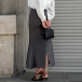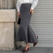 This elegant skirt features a solid color design, high-rise waist, and fishtail hemline for a chic and elegant look.