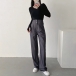 Elegant Solid Color High-wasit Buttoned Wide-leg Suit pants