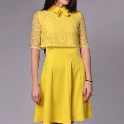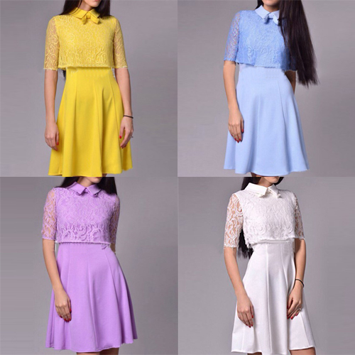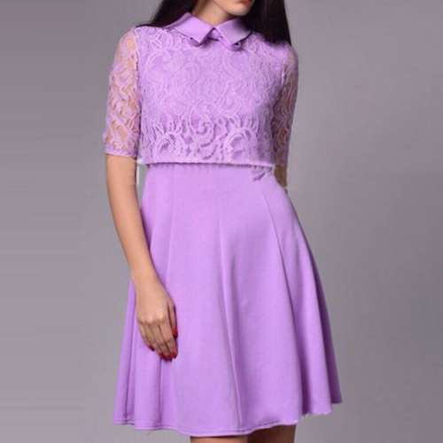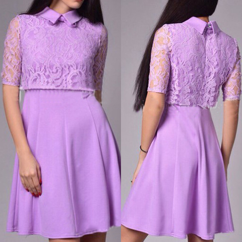 this elegant and delicate dress on hand. Solid color style,lace spliced design makes it look