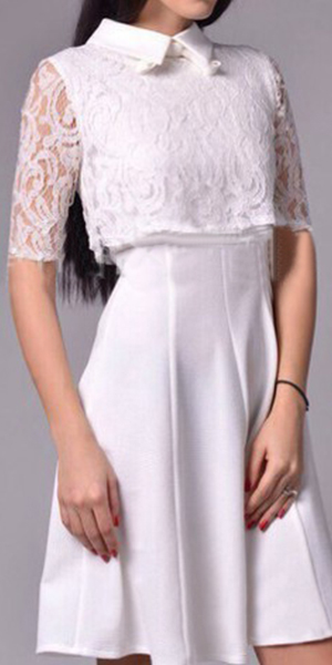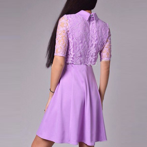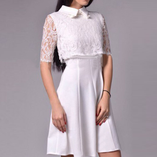 Elegant Solid Color Lace Spliced Short Sleeve POLO Collar Dress