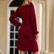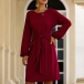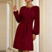 Elegant Solid Color Lantern Sleeve Round Neck Lace-up Dress