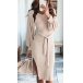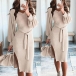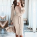 Elegant Solid Color Lantern Sleeve V-neck Slit Hem Tie-belt Slim Fit Dress