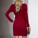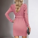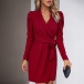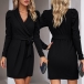 Elegant Solid Color Lapel Long Sleeve Self-tie Mini Dress