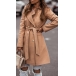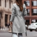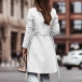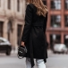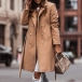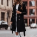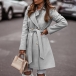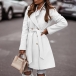 Elegant Solid Color Long Sleeve Double-breasted Woolen Coat with Waist Strap