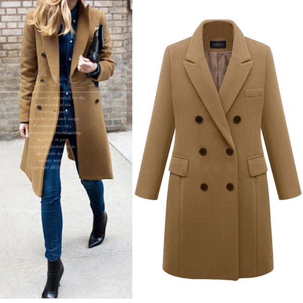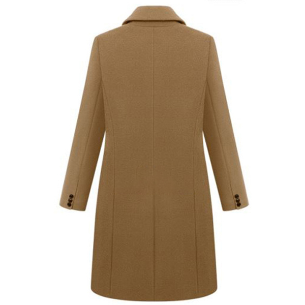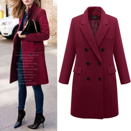 In these cold days,this woolen coat is worth to be your wardrobe staple. Solid color tone design makes it look elegant,stylish yet generous. Finished with long sleeve,double-breasted and a clean silhouette,this piece not only can keep you warm,but also can offer you different matching styles.