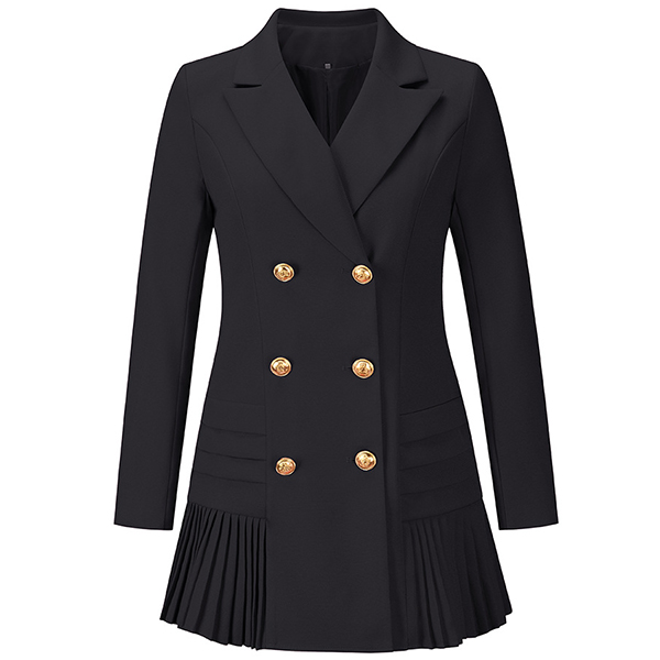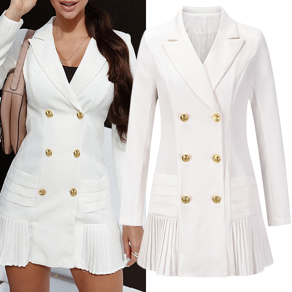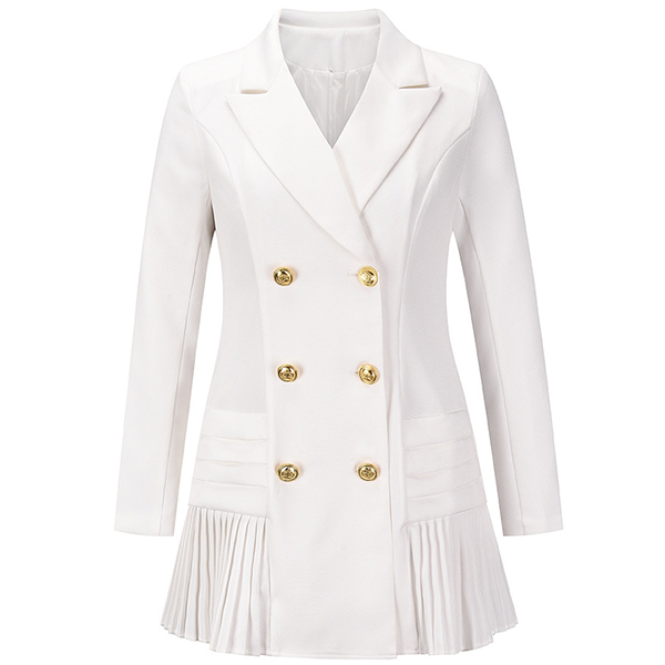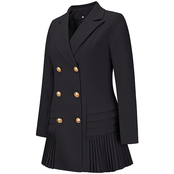 Elegant Solid Color Long Sleeve Laple V-neck Double-breasted Ruched Hemline A-line Dress