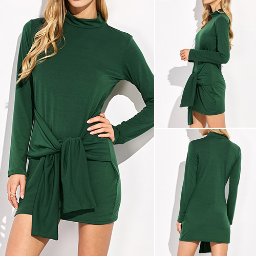 More attention would be grabbed once you wear this dress. Solid color,styled with long sleeve,mock neck and a fit