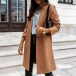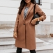 Elegant Solid Color Long Sleeve Notched Lapel Woolen Coat