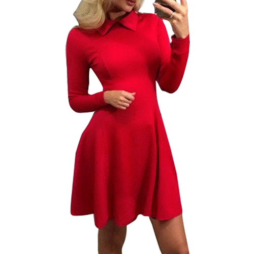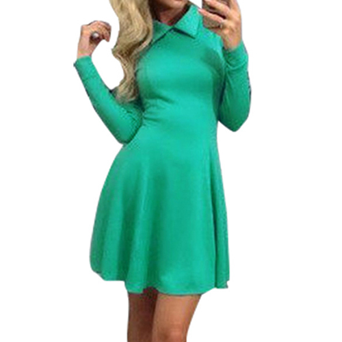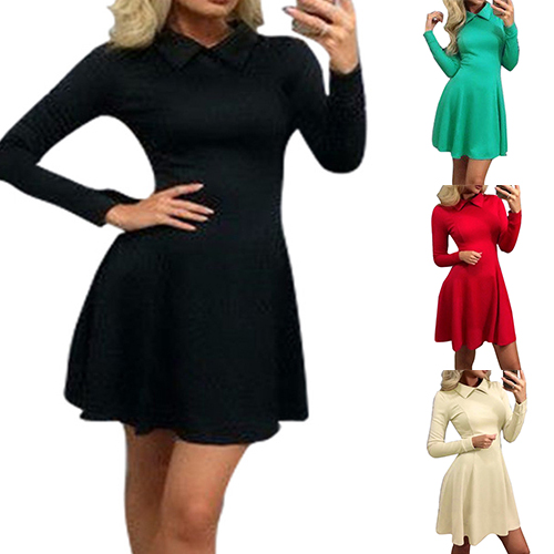spirit with absolute ease. Solid color style,designed with long sleeve,POLO collar and a fit&flare hem,this dress is perfect for any occasion.