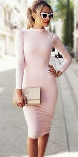 Sleek, fluid, and effortless all at once,this long sleeve bobycon dress is a perfect way to show off