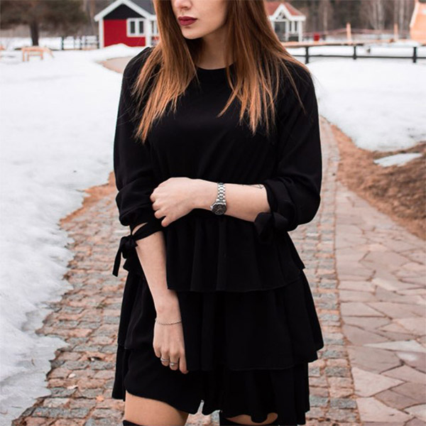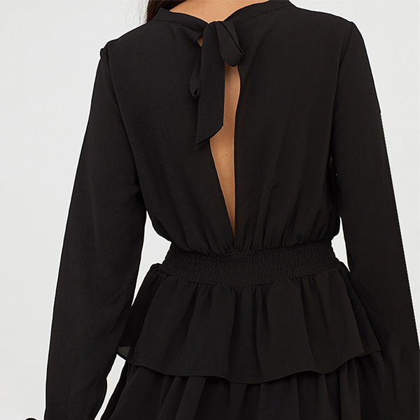 Take an interest with this dress to give your wardrobe an update. Comes with a flattering black tone,finished with long sleeve,round neck and cake hem design,this dress can give you a perfect transition from the daytime out to night dating. Trust me,this little stunner won't let you disappointed!
