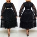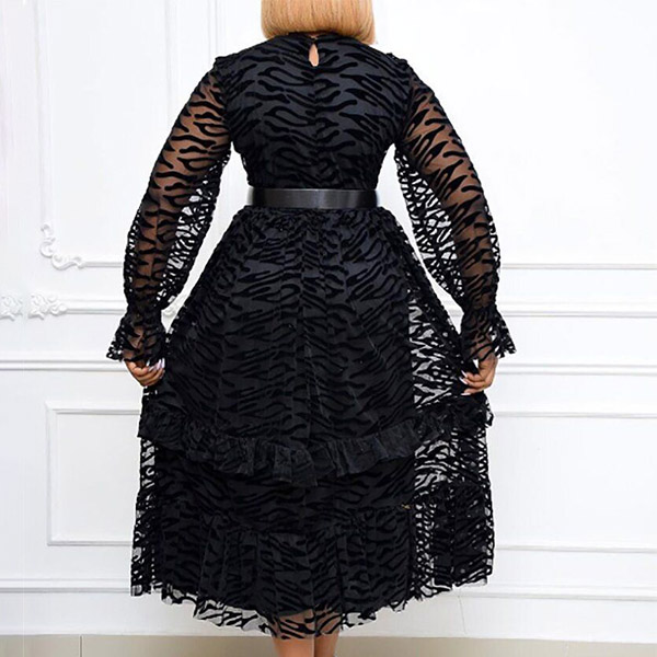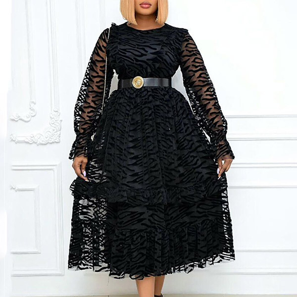 Elegant Solid Color Long Sleeve Round Neck Gauze Spliced Party Dress
