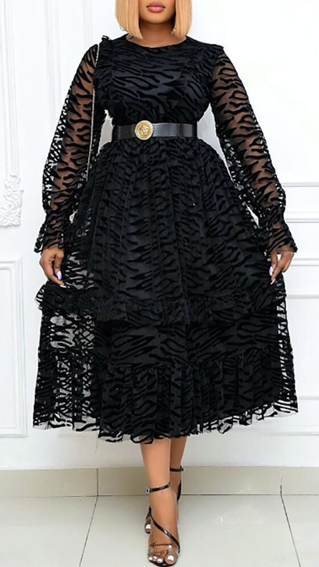 Still don’t know what to wear for your parties and gatherings? Then you can just make your eyes focused on this piece. The gauze spliced details make this piece full of sassy and flirty sense. Finished with long sleeve,round neck and high waist design,this wonderful piece knows how to exude your elegant image as well as your feminine side.