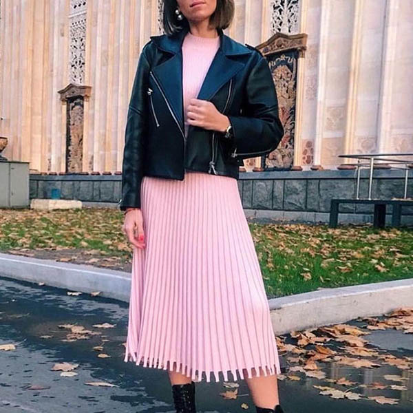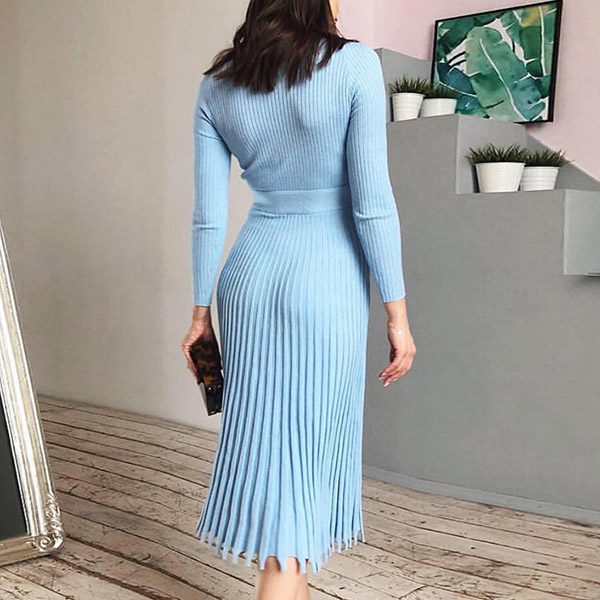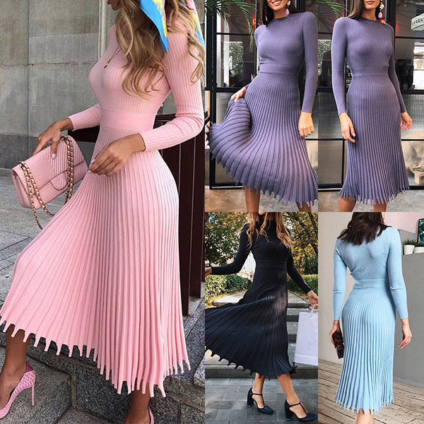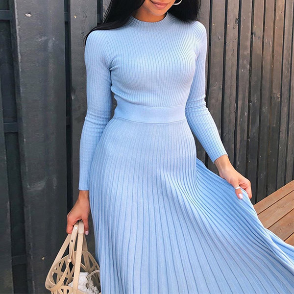You can easily portray your elegant and charming image through this delicate dress. Solid color style,the high waist and clean silhouette design can showcase your slender figure,while the pleated hem design will make this piece look more attractive and stylish. It is worth to be your wardrobe staple when the days get a little cold.