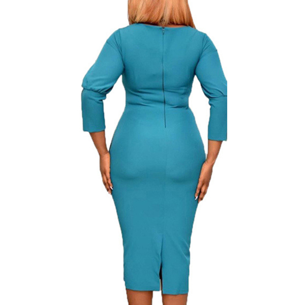 Elegant Solid Color Long Sleeve Round Neck Side-zipper Slim Fit Dress