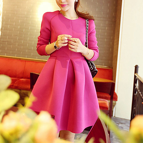 generous solid color,with long sleeve,round neck and high waist design,simple but classic and