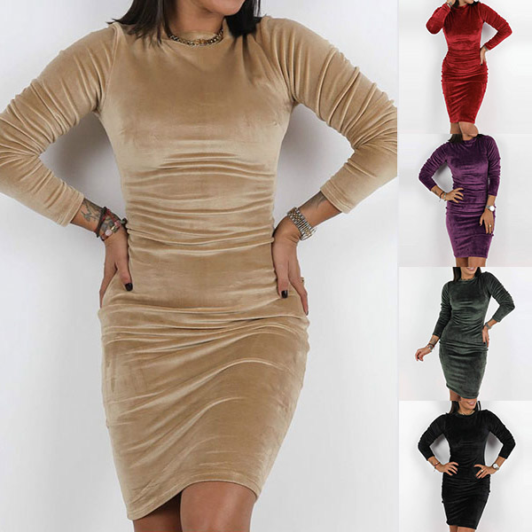 It is an easy thing to portray your elegant and charming image through this delicate dress. Solid color style,finished with long sleeve,round neck and a fit silhouette,this dress definitely can showcase your slender figure. Dress it up with your sexy heels for a beautiful and charming look.