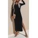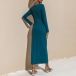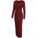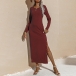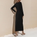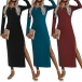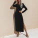 Elegant Solid Color Long Sleeve Round Neck Slit Hem Slim Fit Dress