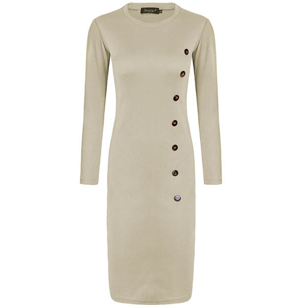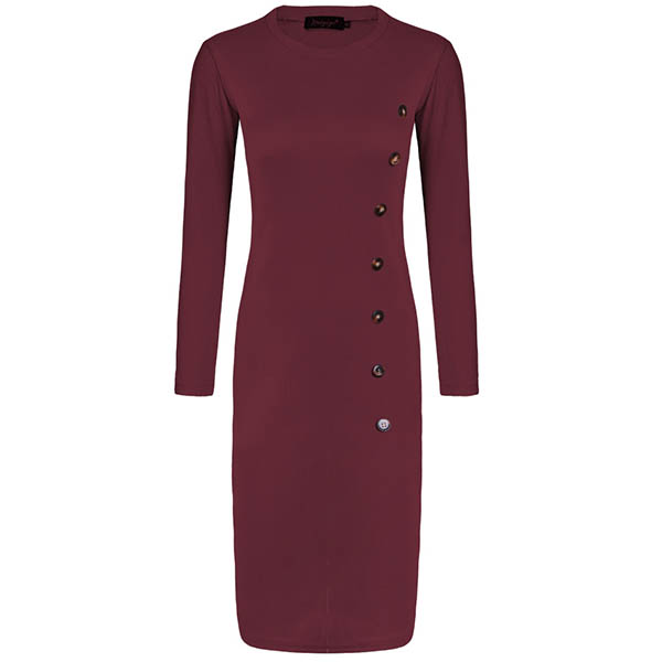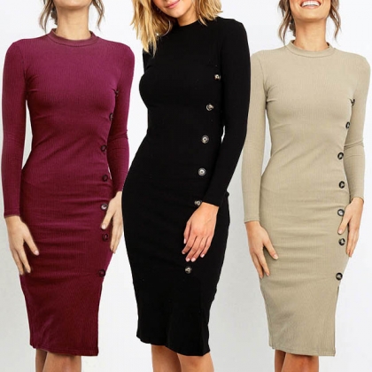 When you wanna flaunt off your slender figure as well as portray your elegant image,this delicate dress can be your secret weapon. Solid color style,finished with long sleeve,round neck and button details,this piece knows how to exude your sexy and flirty vibes. You can match it with your sexy heels and elegant clutch for a stunning look!