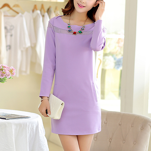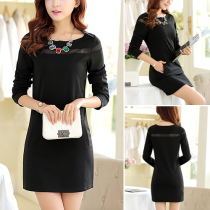 Wow,how could you become so elegant and charming in this dress? It features solid color style,with long sleeve,