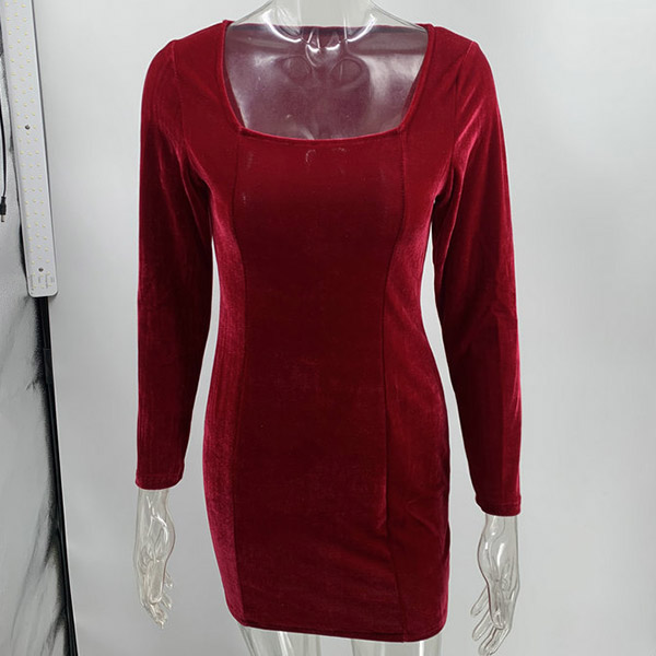 You can easily portray your elegant and charming image through this delicate dress. Solid color style,finished with long sleeve and a fit silhouette,this dress can showcase your slender figure,while the square collar design will enhance your feminine appeal. This is a dress which can be fit for different occasions. So why not buy one?