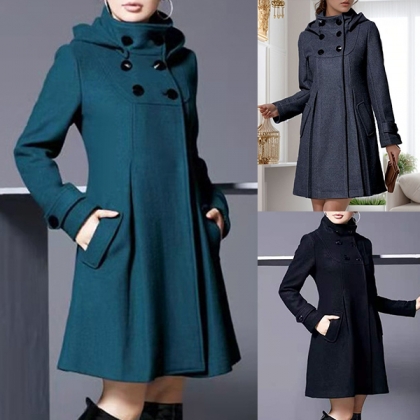 For the cold days,this woolen coat is worth to be your wardrobe staple. Solid color tone design makes it look simple,elegant yet generous. Finished with long sleeve,stand collar and double-breasted design,this woolen coat not only can keep you warm,but also can portray your elegant and delicate image.