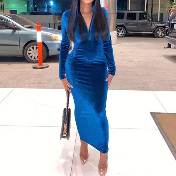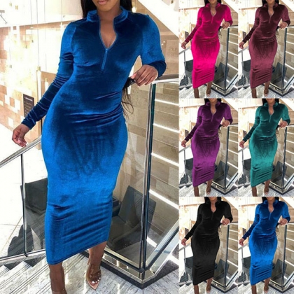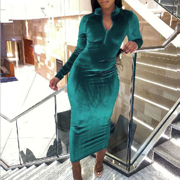 It is an easy thing to portray your elegant and charming image through this delicate dress. Solid color style,finished with long sleeve,stand collar and a fit silhouette,this dress also can showcase your charming and slender figure. So why not save this dress for your fancy events.