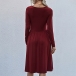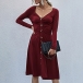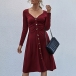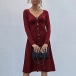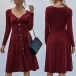 Elegant Solid Color Long Sleeve V-neck Front-button Dress