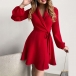Elegant Solid Color Long Sleeve V-neck Lace-up Slim Fit Dress