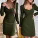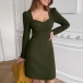 Elegant Solid Color Long Sleeve V-neck Slim Fit Dress