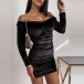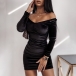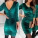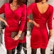 Elegant Solid Color Long Sleeve V-neck Slim Fit Dress