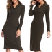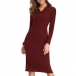 Elegant Solid Color Long Sleeve V-neck Slim Fit Knit Dress