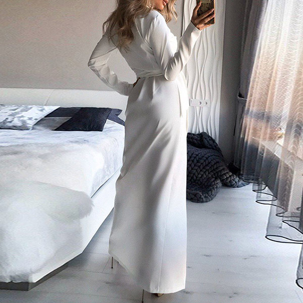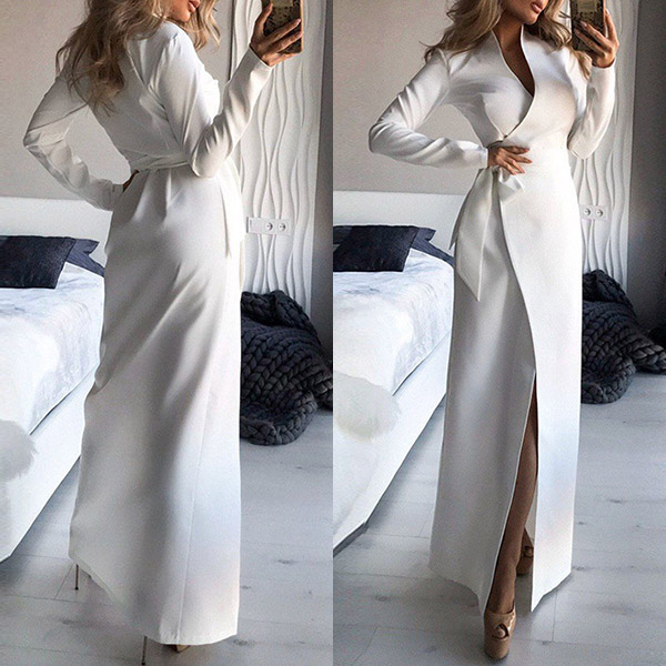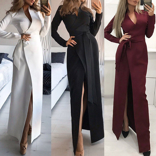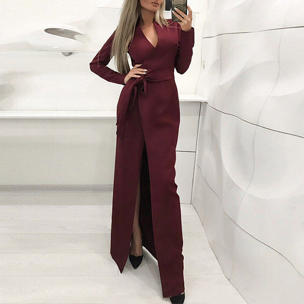 Don't know what to wear for your fancy events? Then you can just have a try this delicate dress. Solid color tone design makes it look elegant yet generous,while the v-neck and slit hem design can lend you some flirty and feminine vibes. Paired with your sexy heels and elegant clutch,you can't be more stunning and charming!