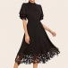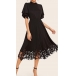 As for your fancy events like cocktail parties or weekend gatherings,this elegant,delicate dress can be your wise choice. The flattering black tone and high waist design can showcase your showcase your slender figure. Moreover,the lotus sleeve and lace spliced hem will make this piece look more attractive. Like it? Then add it to your wardrobe!
