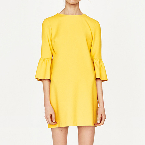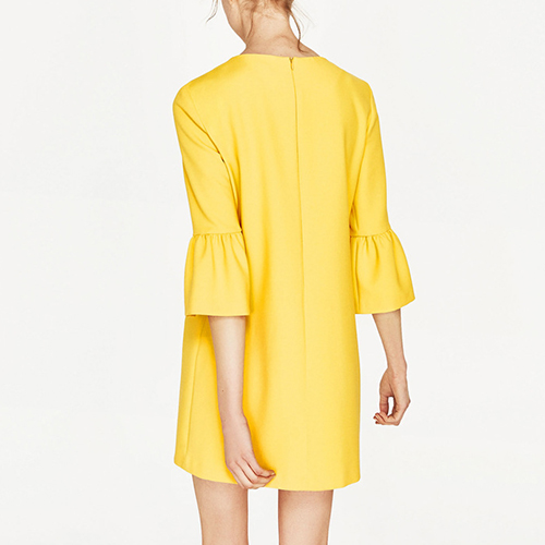 with lotus sleeve,round neck and a clean silhouette,delicate and stylish. You can stay elegant and charming all day in this dress.