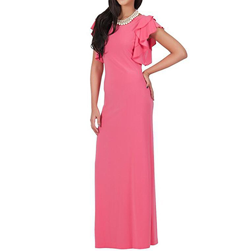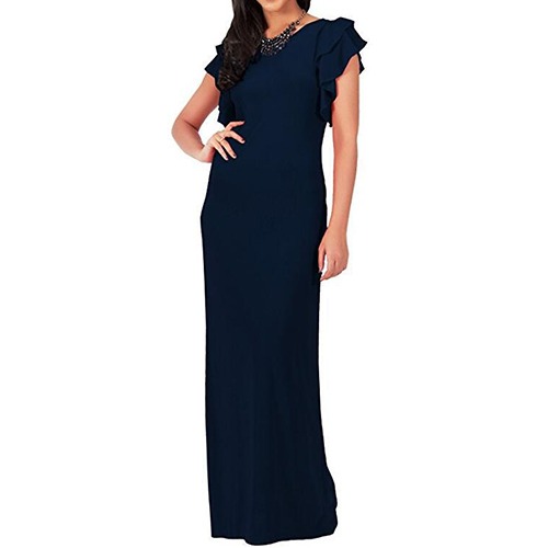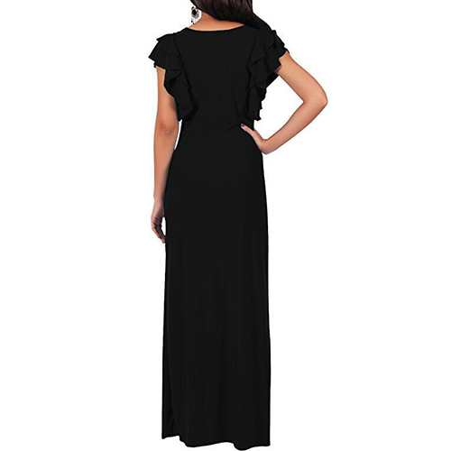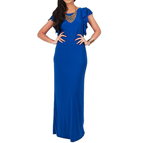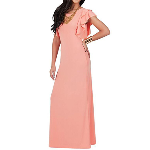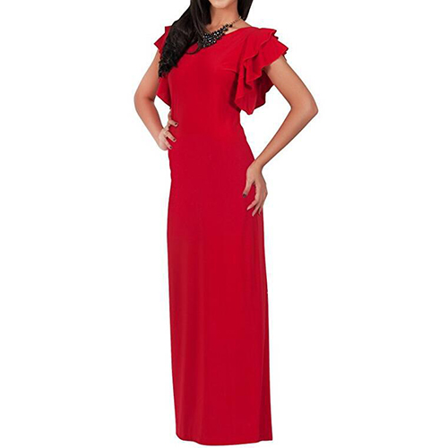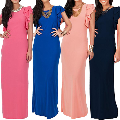 with lotus sleeve,round neck and a maxi length,this dress can keep you elegant all the time.