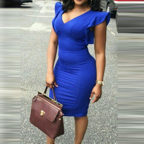 we reach for this dress. Features an elegant solid color,with lotus sleeve and v-neck design,sexy and