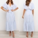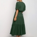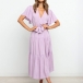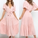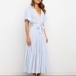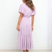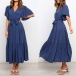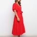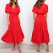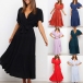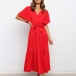 It is an easy thing to portray your elegant and charming image through this delicate dress. Solid color style,the lotus sleeve and v-neck design can will exude your sweet yet feminine side. Comes with the tie-belt design,which will help showcase your slender figure. This is a dress which can be fit for different occasions. Different colors for your optional.