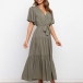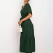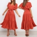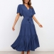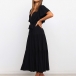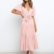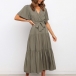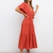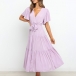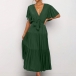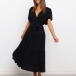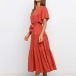 Elegant Solid Color Lotus Sleeve V-neck Tie-belt Dress