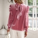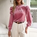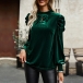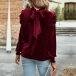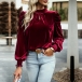 Elegant Solid Color Mock Neck Puff Long Sleeve Velvet Shirt