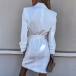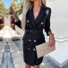 Elegant Solid Color Notch Lapel Double Breasted Long Sleeve Blazer Dress